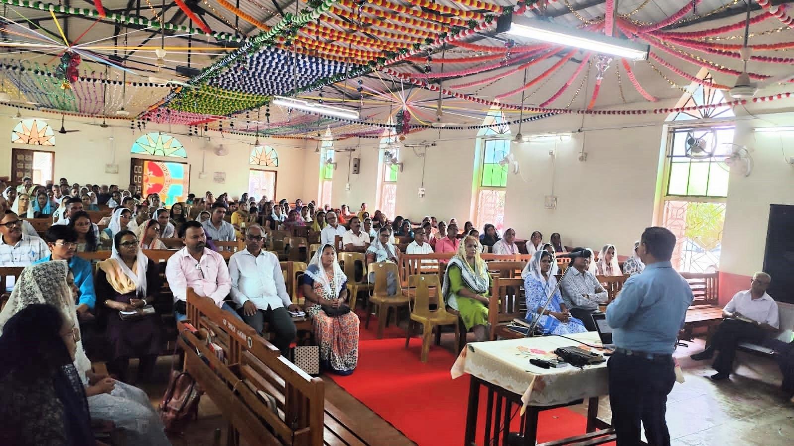 CNI Church Agaswan successfully hosted a one-day family retreat. The event saw active participation from nearly 200 couples and hundreds of volunteers. National Director Rev. Jacob Christian was assigned three key subjects for the retreat: 1. spiritual growth of family members, 2. the impact of social media on the family, and 3. strategies for becoming a missional family. Drawing upon my expertise, National Director Rev. Jacob Christian effectively employed PowerPoint presentations and engaging practical activities to deliver impactful sessions. After the retreat, Rev. Golabsing, the esteemed pastor of the church, provided feedback that the sermons deeply resonated with the attendees, inspiring numerous families to commit to praying for their children's spiritual well-being.
